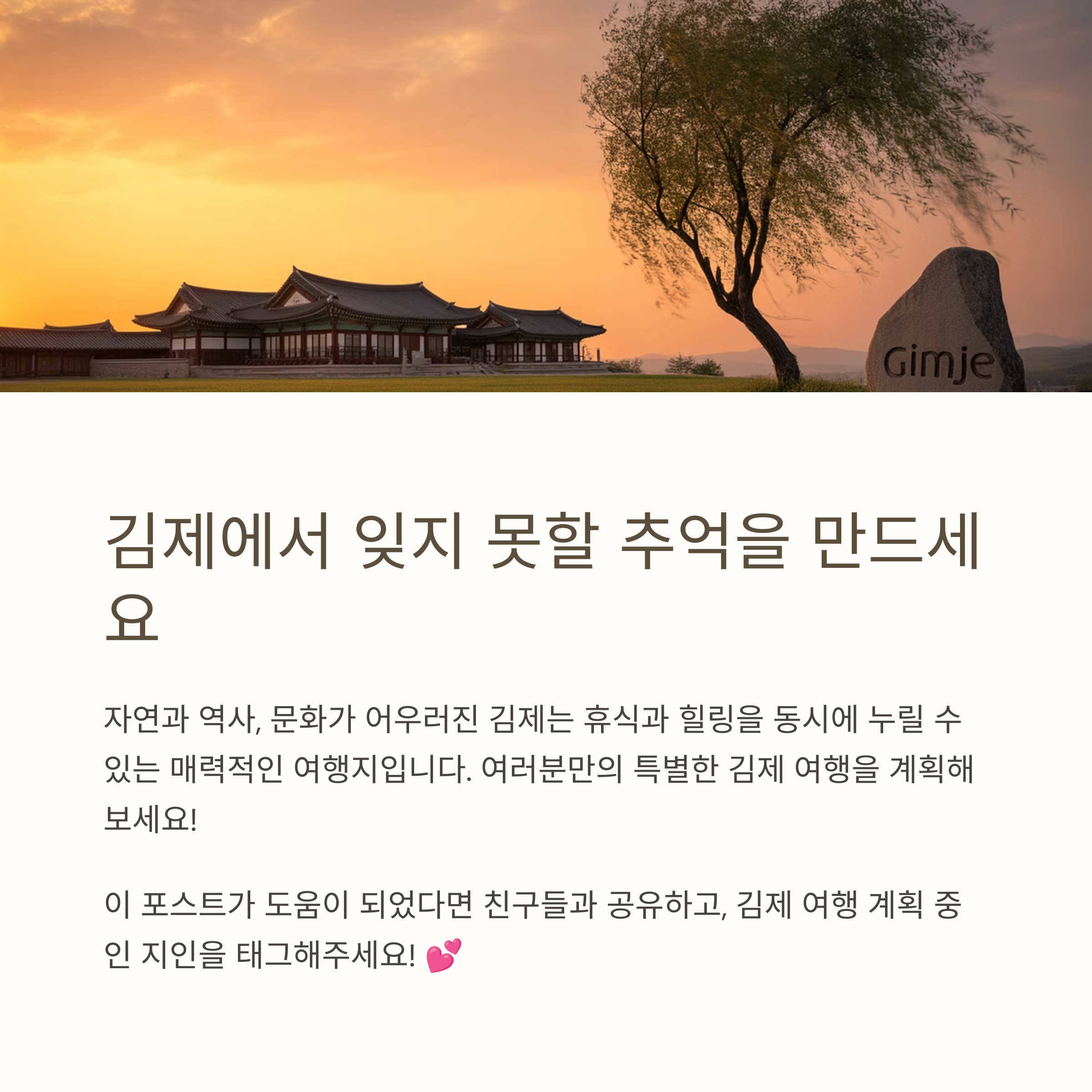 김제에는 이 외에도 수많은 볼거리와 먹거리가 가득합니다. 김제를 방문하는 모든 이들에게 잊지 못할 여행 경험을 선사하며, 휴식과 힐링을 동시에 누릴 수 있는 매력적인 여행지가 아닐 수 없습니다. 김제 여행을 계획 중이라면 이번 포스팅이 도움이 되기를 바랍니다. 김제에서의 특별한 추억이 여러분을 기다립니다.