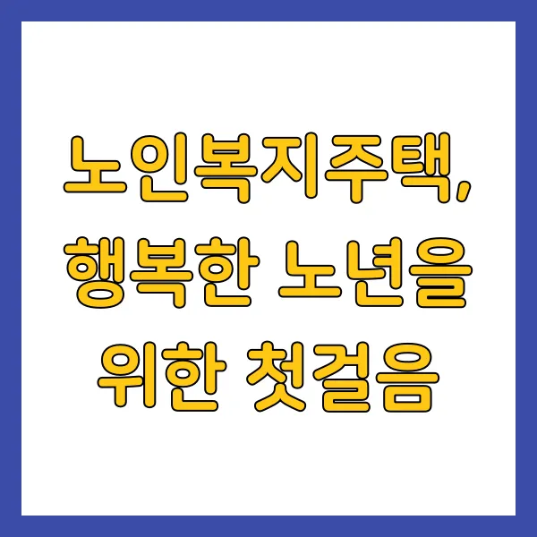 노인복지주택, 행복한 노년을 위한 첫걸음