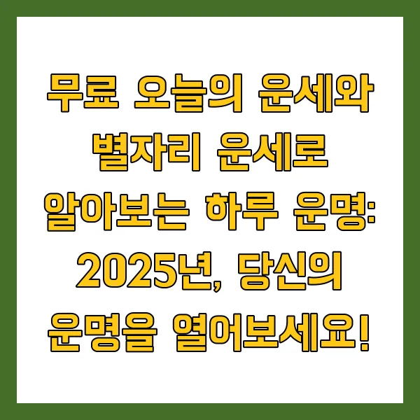 무료 오늘의 운세와 별자리 운세로 알아보는 하루 운명: 2025년, 당신의 운명을 열어보세요!