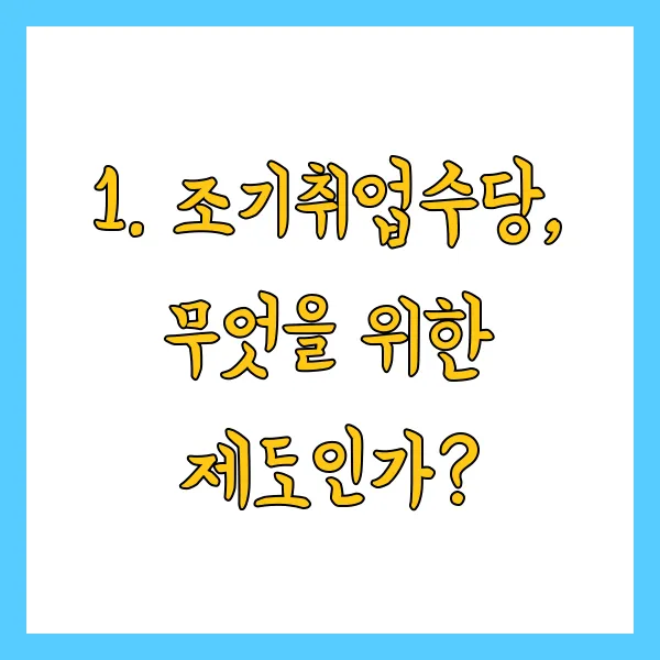 1. 조기취업수당, 무엇을 위한 제도인가?